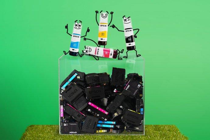 Met Epsons revolutionaire EcoTank-printers behoren cartridges voorgoed tot het verleden en bespaart u tot wel 95% op de inktkosten*. EcoTank-printers zijn uitgerust met makkelijk navulbare inkttanks waarmee u duizenden pagina's kunt printen. Eén set inktflessen is het zelfde als maximaal 72 cartridges*. Dat scheelt niet alleen tijd en geld, maar zorgt ook voor veel minder afval. Bovendien hebben Epson-printers dankzij de Heat-Free technologie een lager energieverbruik en zijn er minder vervangende onderdelen nodig. Goed voor uw portemonnee én het milieu!